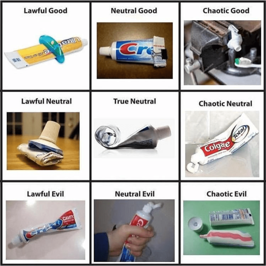 How to explain being Chaotic Neutral in DnD, They look like stoner/skater dudes just stealing some snacks, so I feel chaotic neutral is the alignment here. Though, the argument . If you find this site serviceableness, please support us by sharing this posts to your preference social media accounts like Facebook, Instagram and so on or you can also Save this blog page with the title Alignment Meme by using Ctrl + D for gadgets a laptop with a Windows operating system or Command + D for laptops with an Apple operating system. If you use a smartphone, you can also use the drawer menu of the browser you are using. Whether it's a Windows, Mac, iOS or Android operating system, you will still be able to bookmark this website.